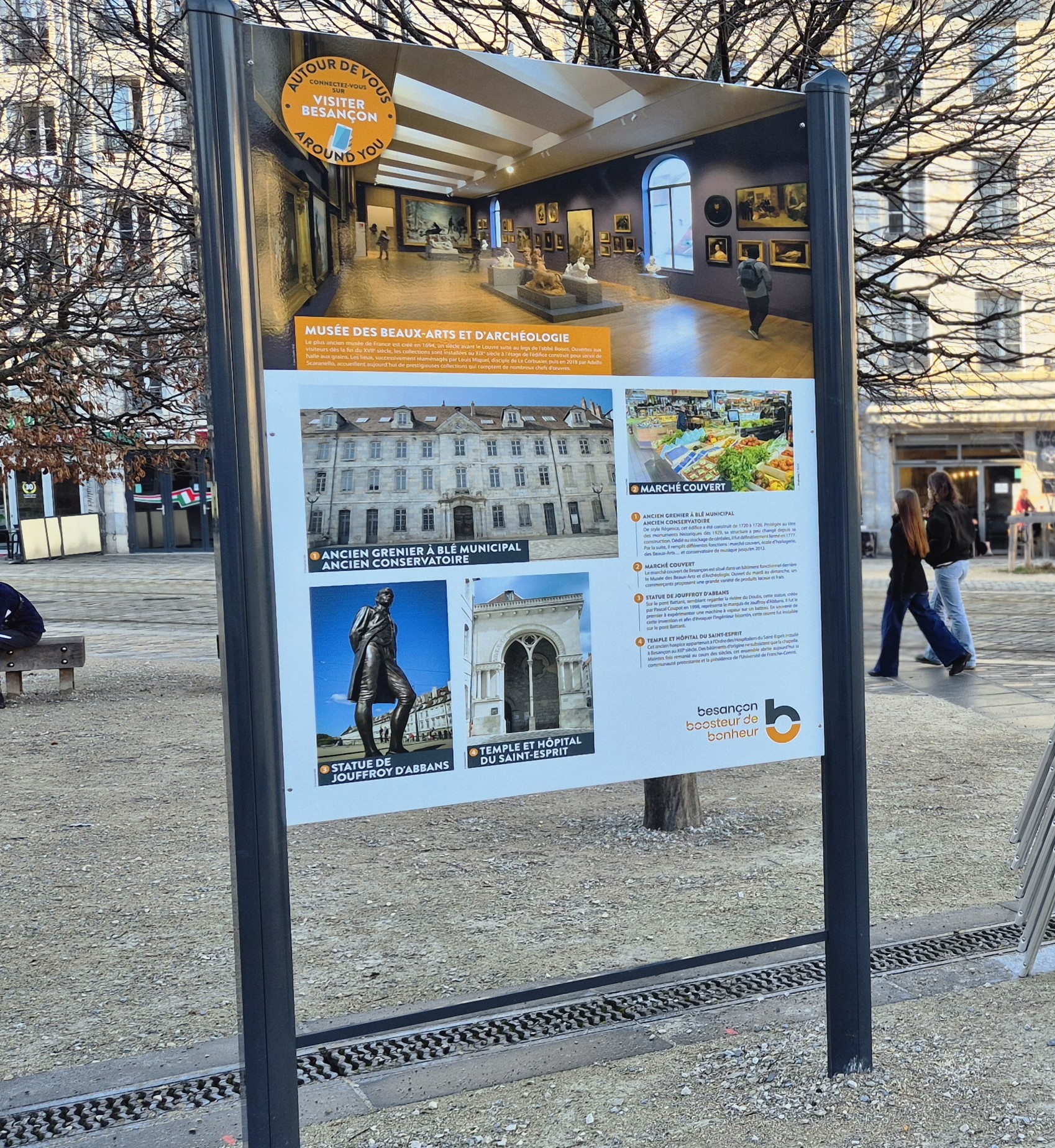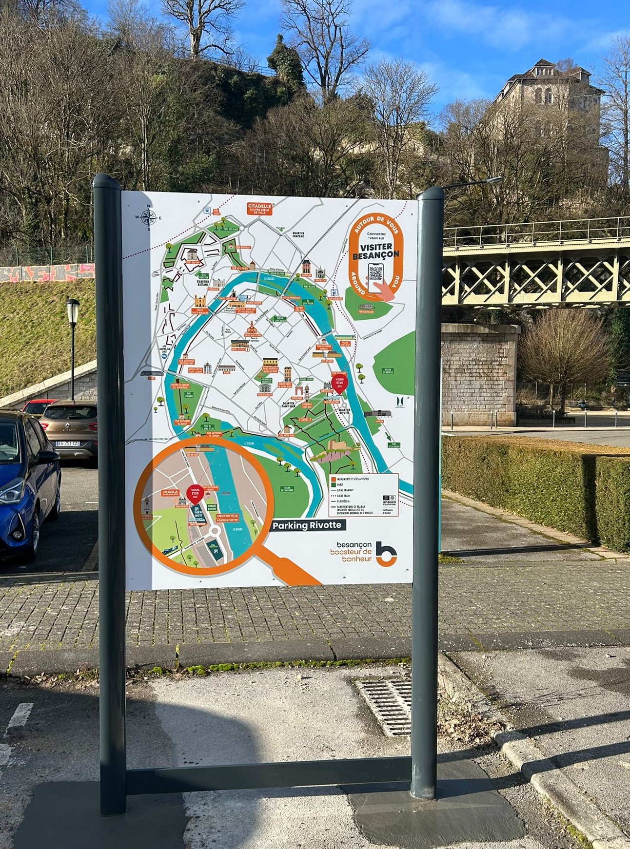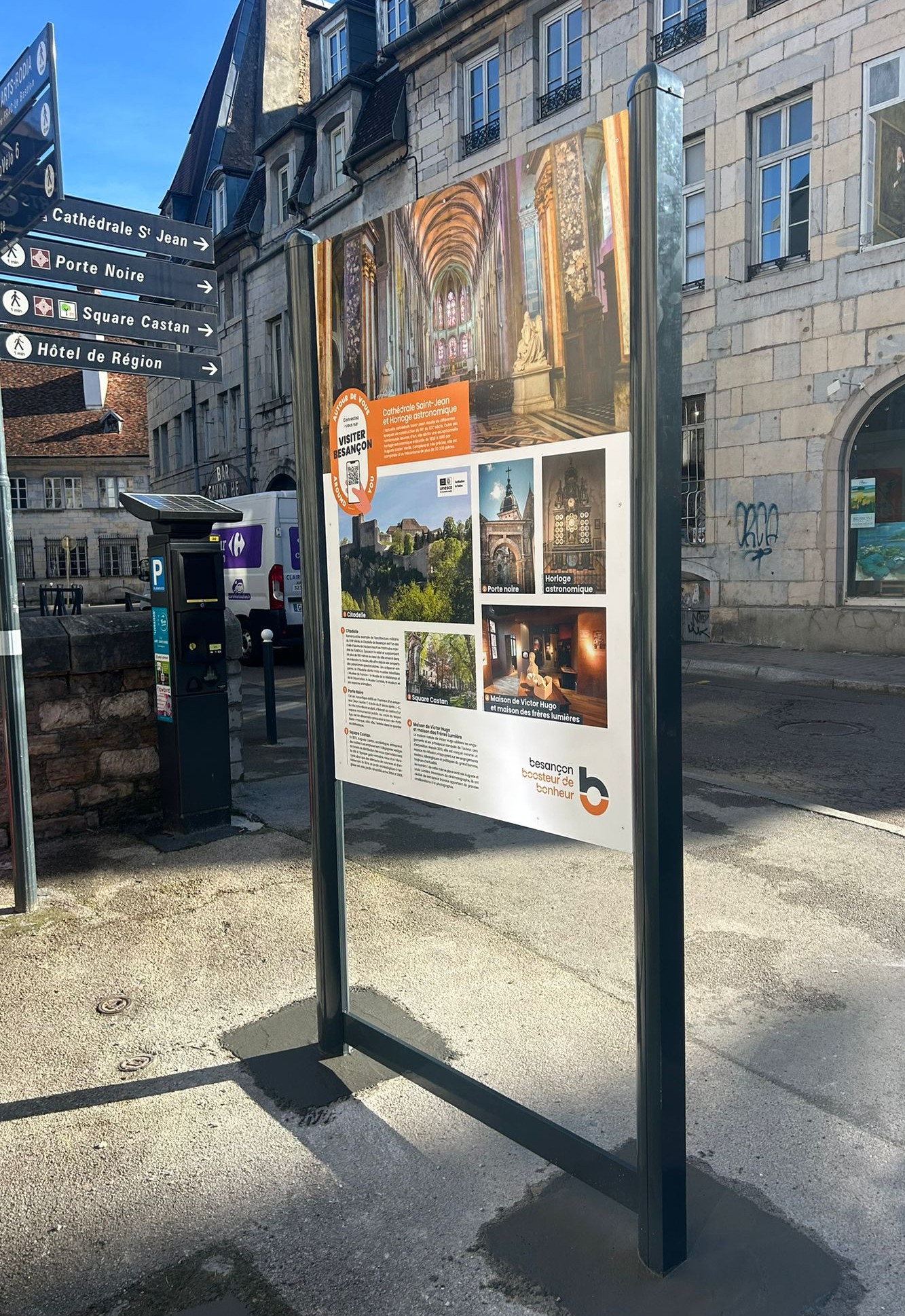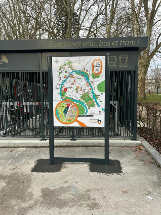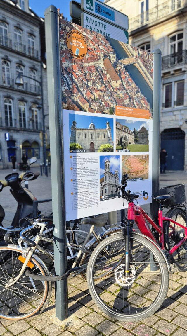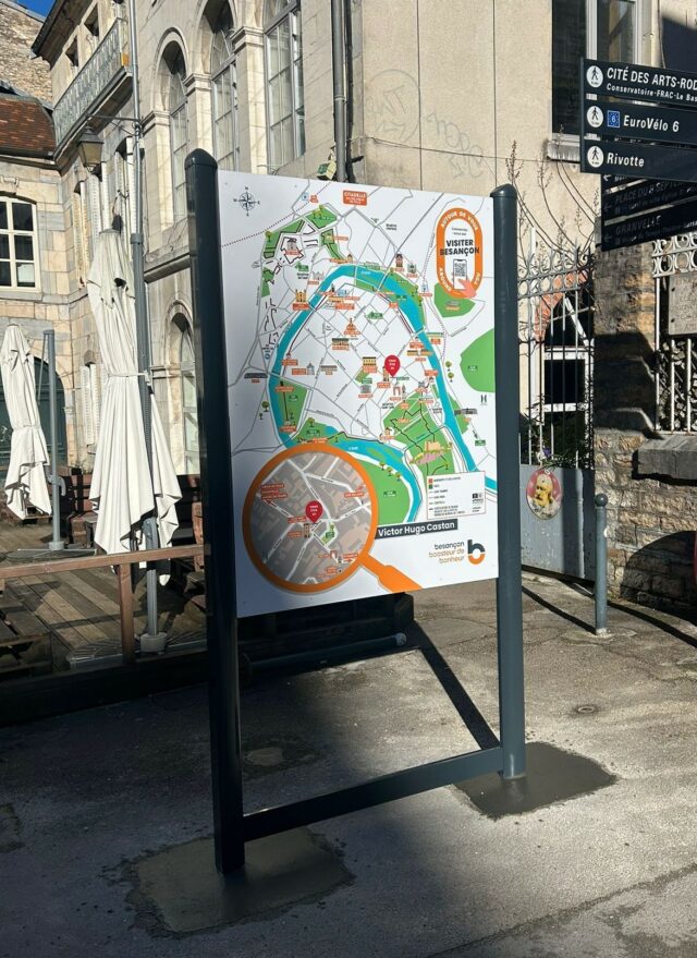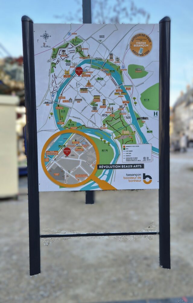 Dans le cadre du marché Signalétique Piétonne les équipes de Bourgogne Franche Comté Signaux ont fabriqué et posé des panneaux RIS (Relais d’Informations Services) dans les secteurs de Chamars, Rivotte, Victor Hugo. place de la révolution et dans le quartier Battant à Besançon.